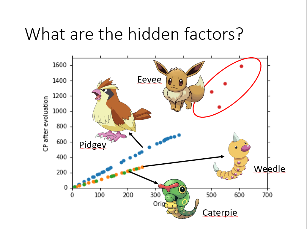 很明显,Pokemon的种类是一个hidden factor,对我们的目标函数有影响。