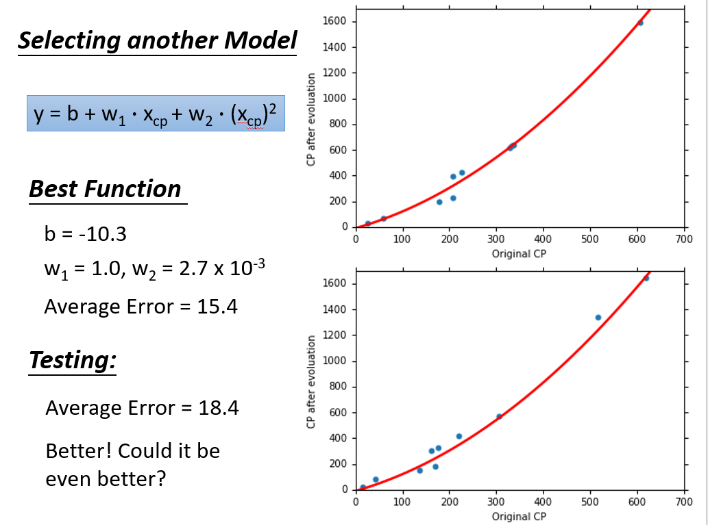 接下来我们来看一个过拟合的例子,即课程中Pokenmon进化后cp值预测的问题。