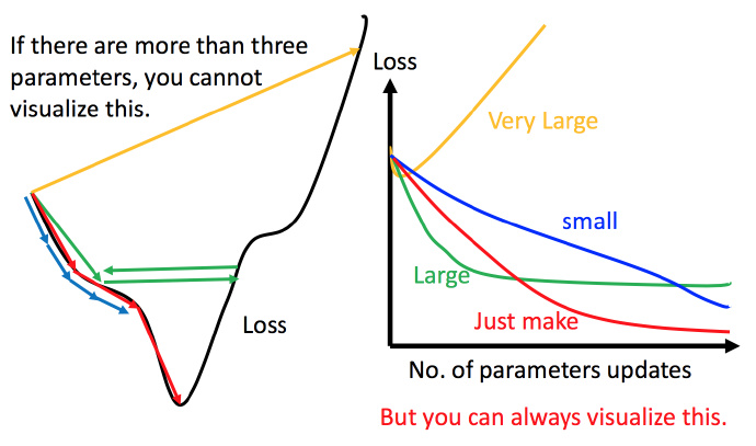 为了解决学习率不合适的问题,我们提出一种自适应学习率的算法。很明显我们希望在一开始学习率可以大点,在快接近极值点的时候学习率可以小点,所以我们让学习率随着迭代次数的增加而逐渐减小。